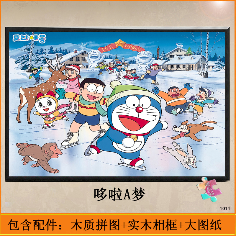 哆啦a梦拼图1000片500块300带框大型成人版 解压动漫儿童益智玩具