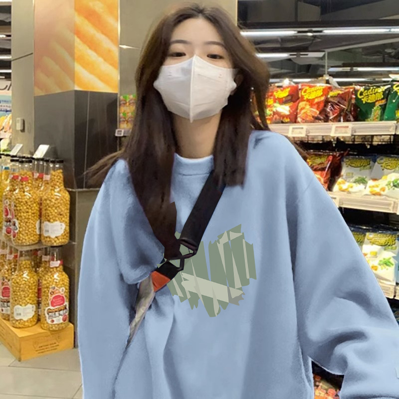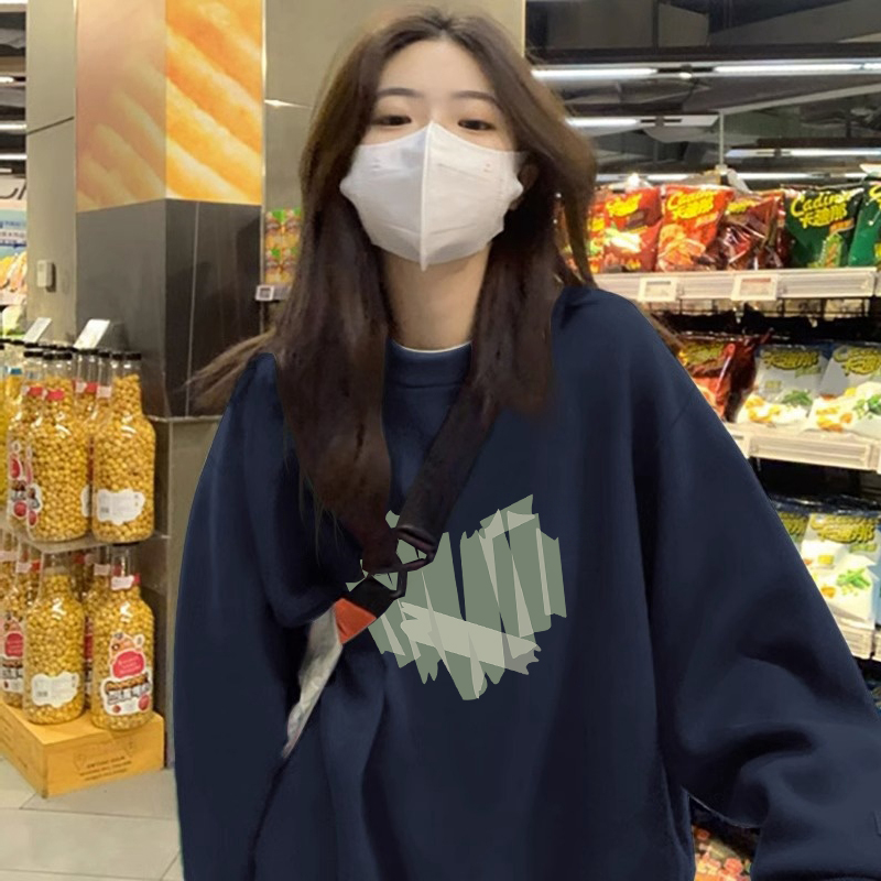 上衣潮 秋冬加绒外套墨绿色宽松中长款 纯棉圆领卫衣女新款 2025时尚