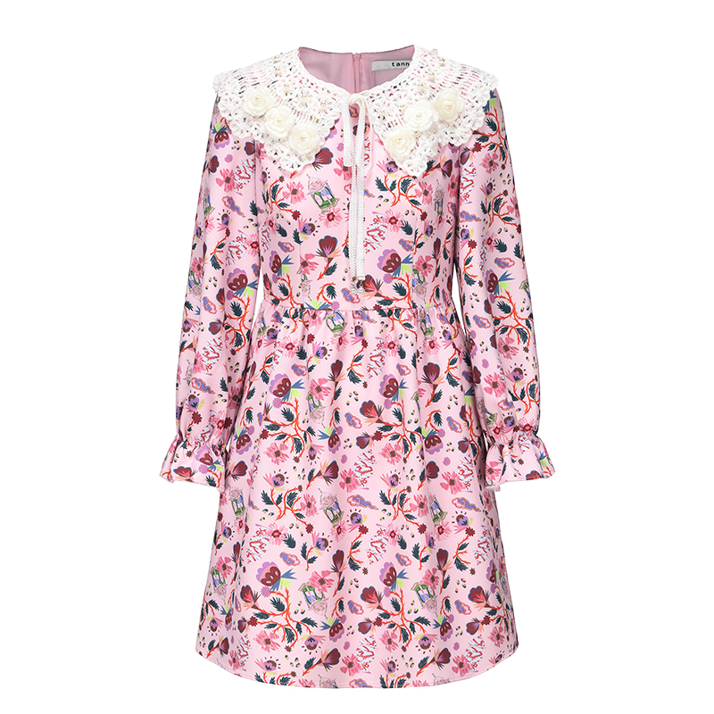 tanni新款 设计收腰连衣裙TM31DR045A 优雅气质圆领花苞袖