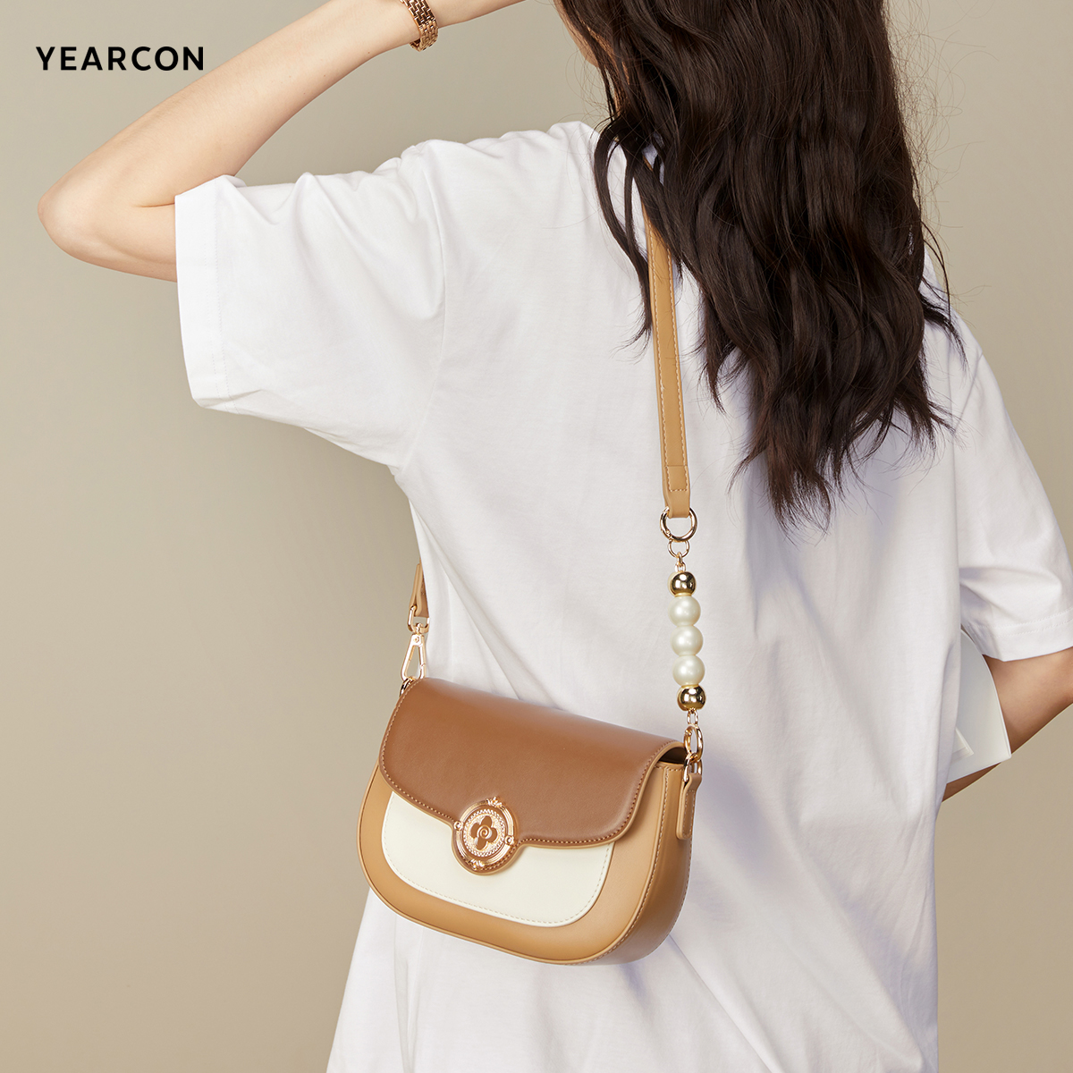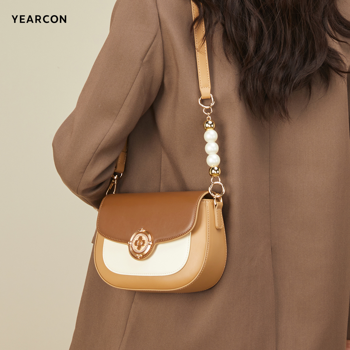 意尔康包包女2025新款 马鞍包百搭通勤包质感斜挎包单肩撞色小包