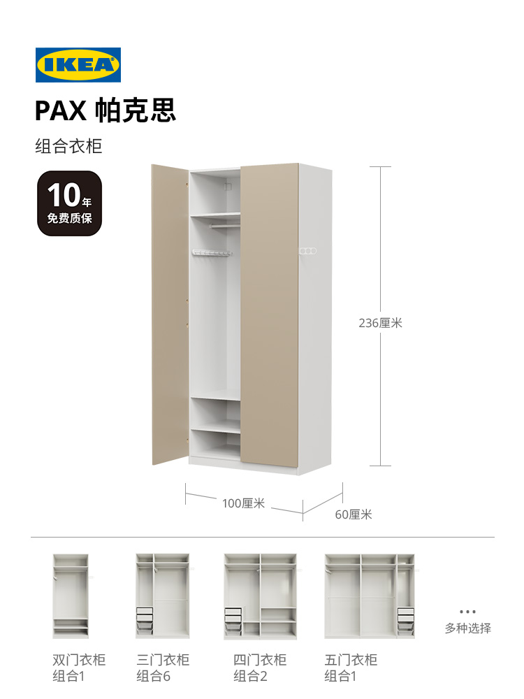 IKEA宜家PAX帕克思组合衣柜卧室衣橱收纳柜家用简约小户型现代