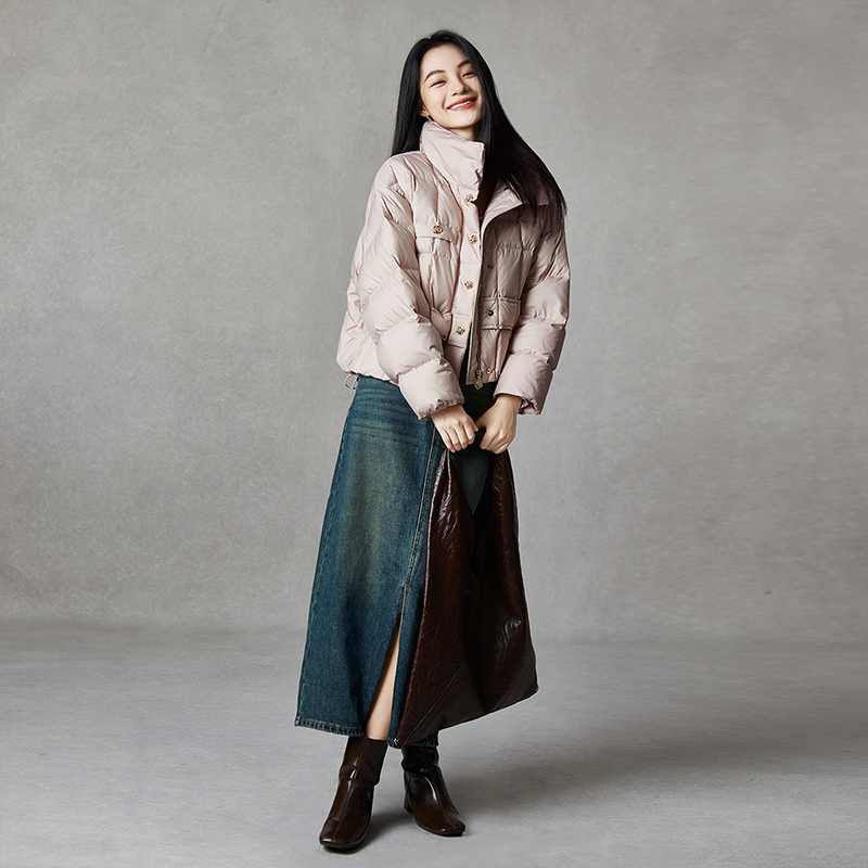 外套 保暖小香风羽绒服女宽松显瘦挡风立领鸭绒短款 qs秸熙冬季 新款