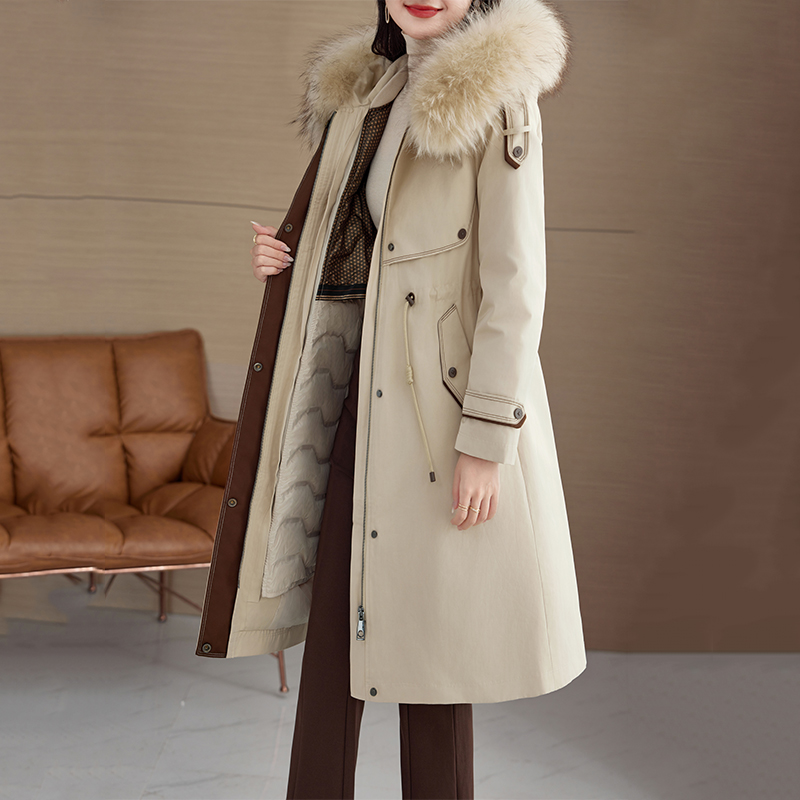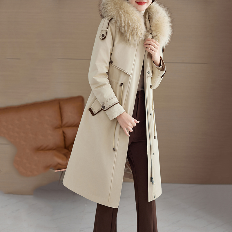 冬加厚工装 毛领羽绒服中长款 骆驼女装 派克服羽绒外套 小红书同款