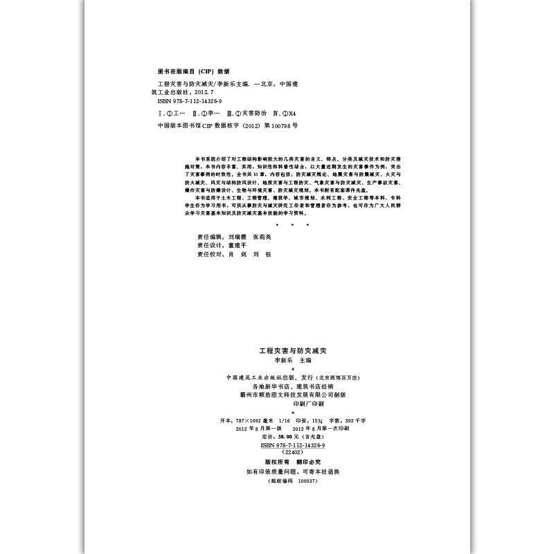 风灾与结构防风设计 地质灾害与工程防灾 爆炸灾害与防爆设计 工程灾害与防灾减灾 主编 防灾减灾概论 李新乐 建工社 含光盘