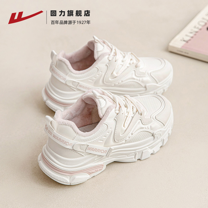 女2025新款 女鞋 秋季 厚底百搭休闲运动鞋 加绒保暖小白鞋 回力老爹鞋