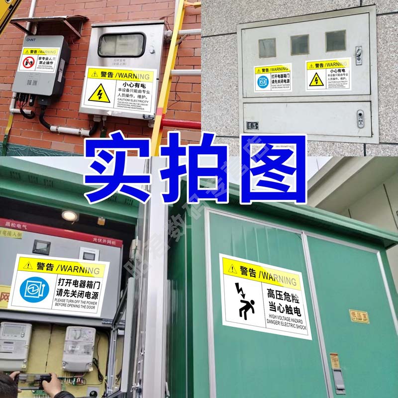 当心触电警示贴配电箱有电危险警示牌机械设备安全标识贴当心机械伤人注意高温高压危险用电安全警示牌定做