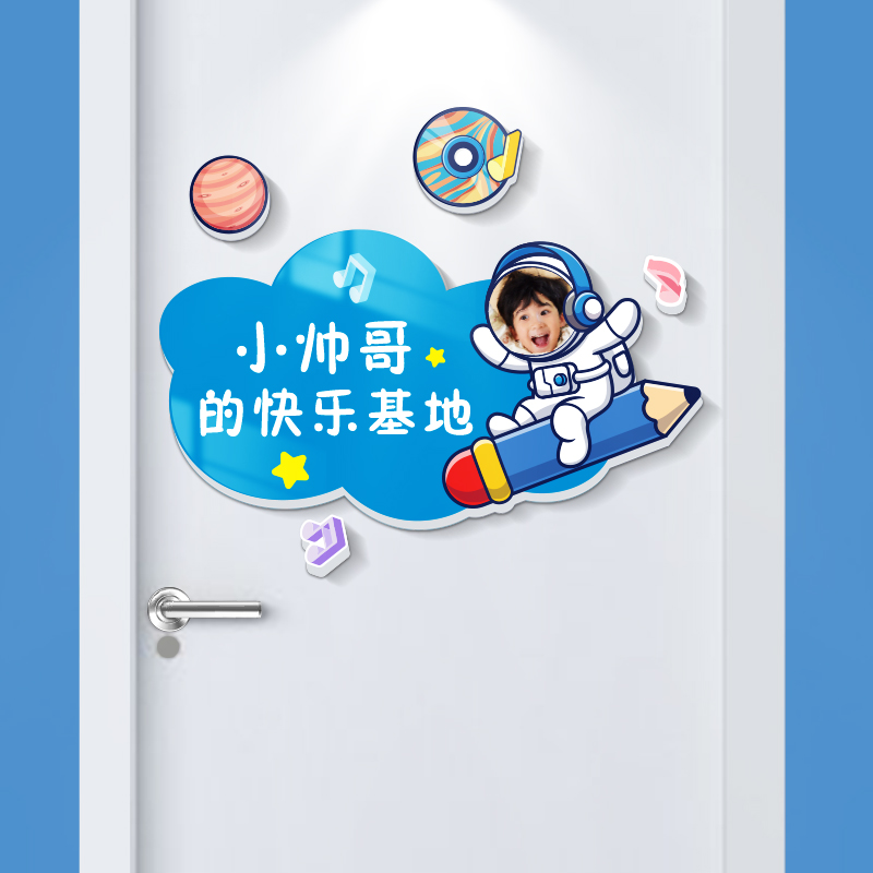 男孩房间装 饰布置儿童房创意卧室门宇航员墙贴定制照片门贴