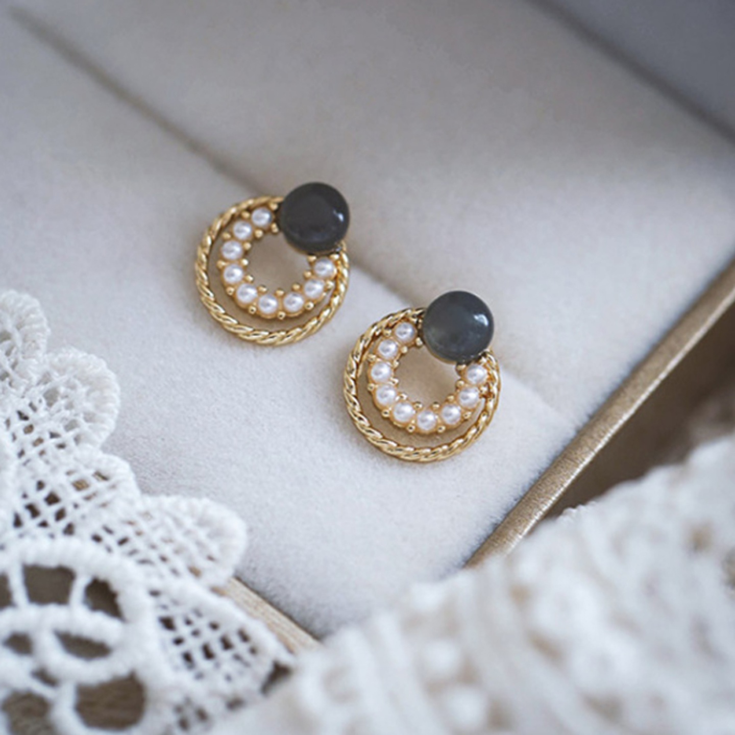 名尚家s925银针圆形翡冷翠复古拎环耳钉古风精致优雅耳环珍珠新款