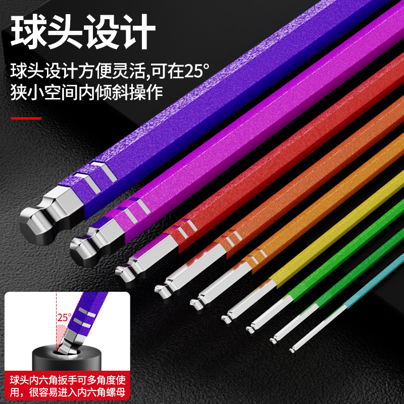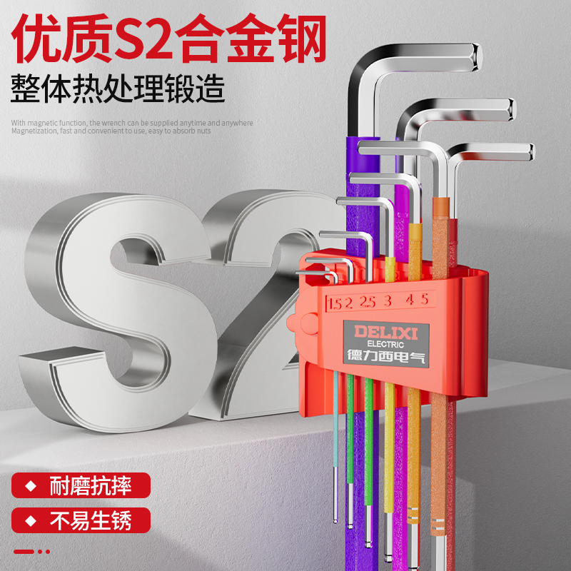 德力西电气内六角扳手 梅花米字彩色s2内6角螺丝刀加长内六方 套装