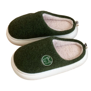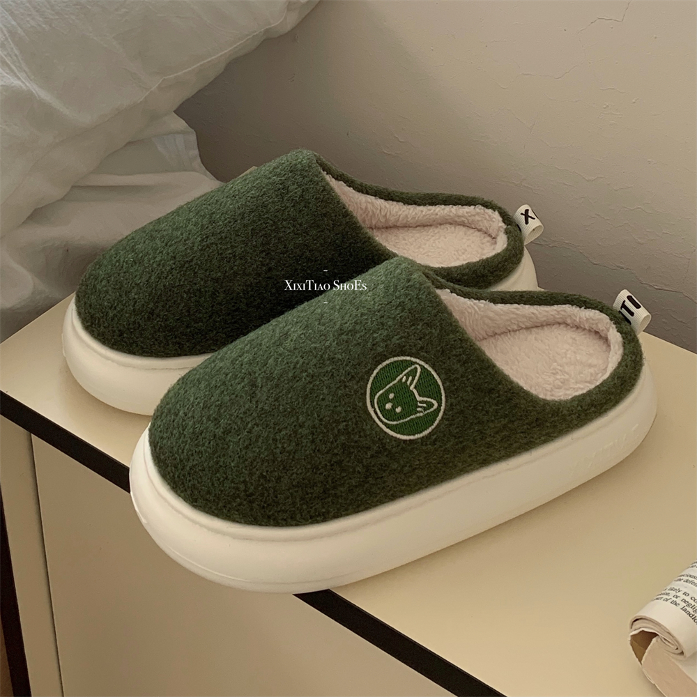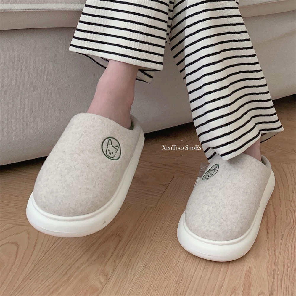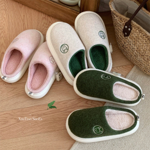 日系趣味卡通小狗情侣厚底棉拖鞋 冬季 拼色踩屎感男女士家居鞋 时尚