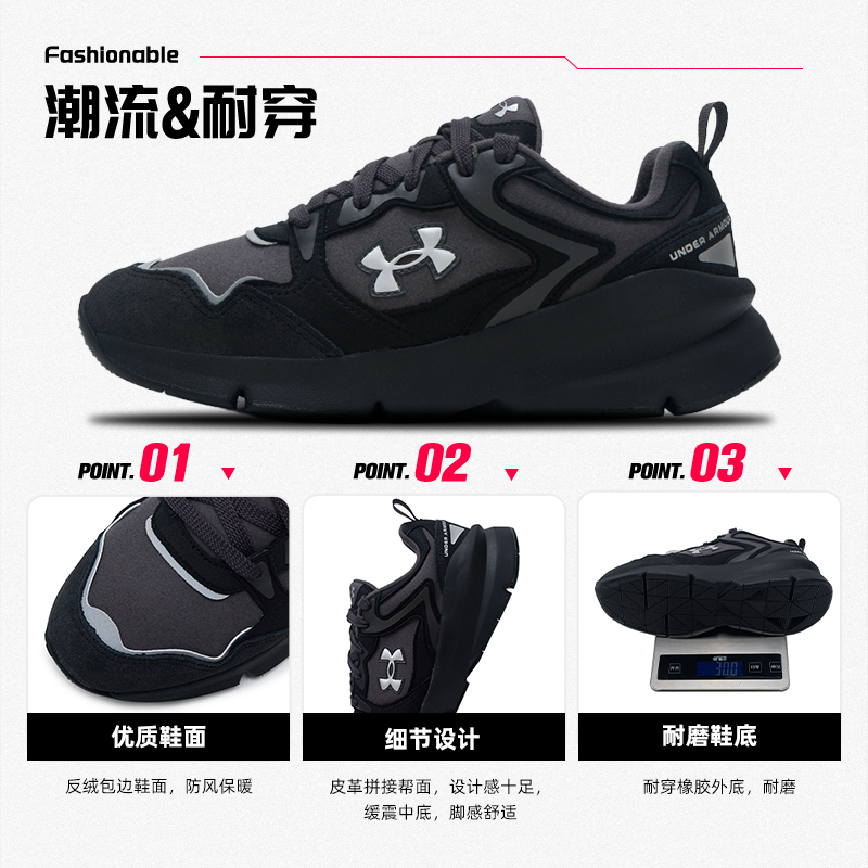 秋季 跑步鞋 新款 黑色透气跑鞋 子 安德玛官方男鞋 轻便复古运动鞋 女鞋