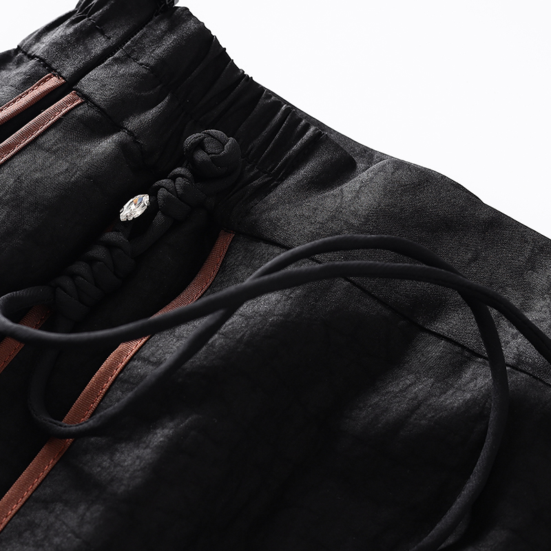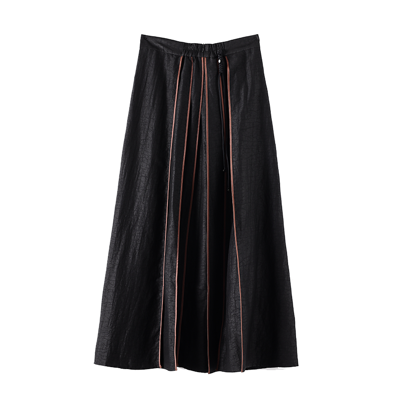 507358 下摆蕾丝拼接抽绳松紧腰半身裙女装 三福长裙2025秋季