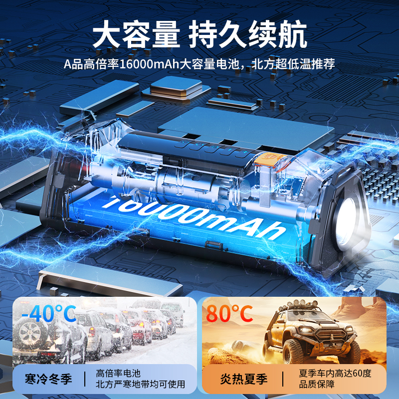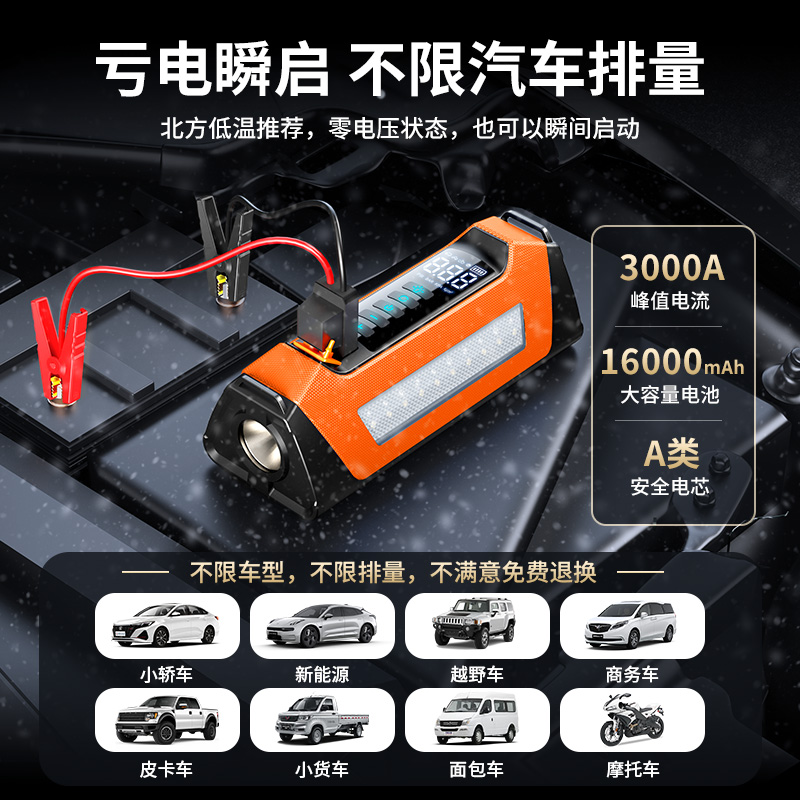 PSOOO汽车应急启动电源充气泵一体机12v电瓶多功能搭电宝打火神器