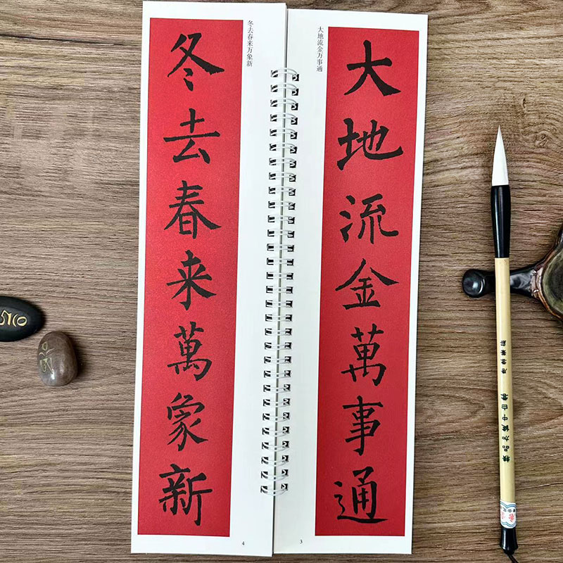 43幅对联12个横批 碑帖近距离临摹练字卡 柳体楷书毛笔书法字帖 附简体旁注 社 柳公权楷书集字春联 天津人民美术出版 经典