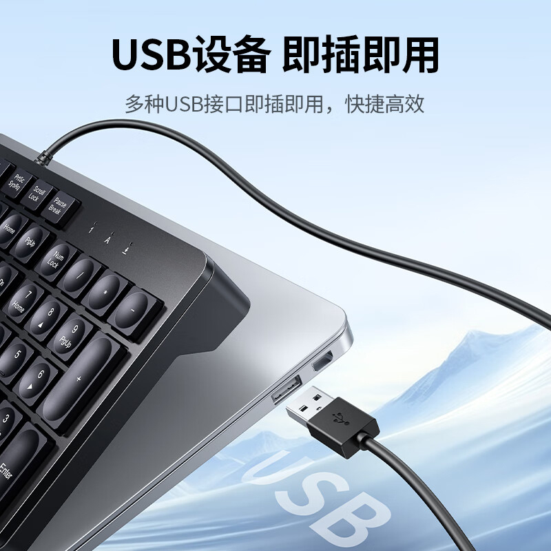 绿联键鼠套装 机笔记本电脑鼠标 USB有线键盘人体工学家用办公台式