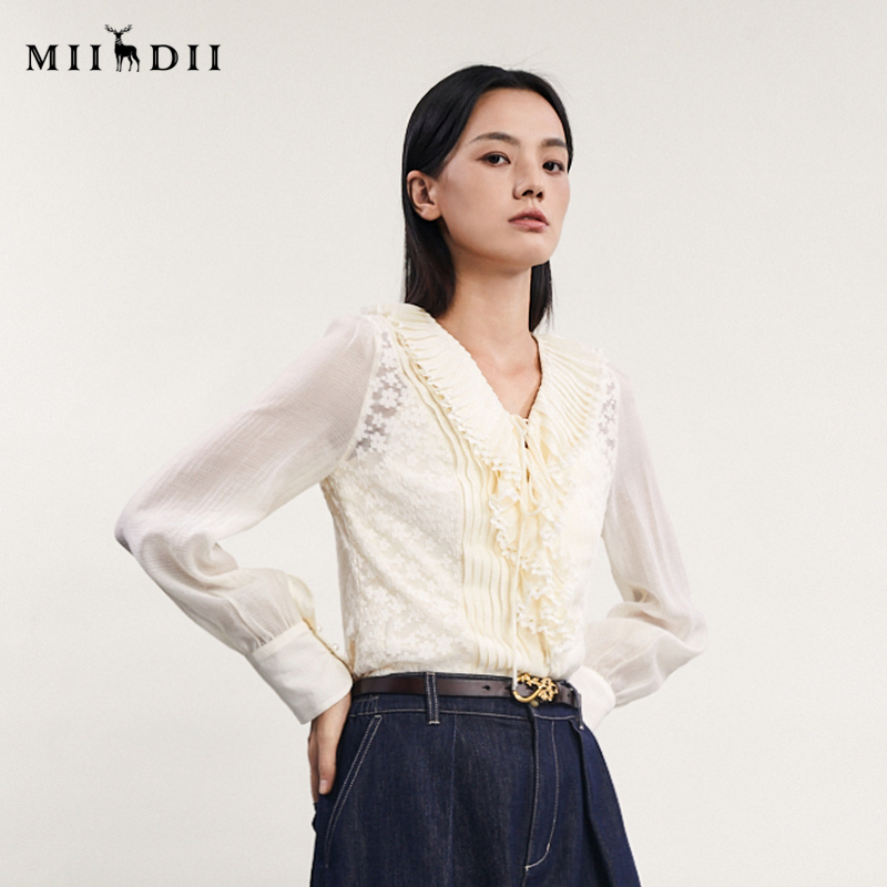 新款 女春季 气质通勤风V领衬衣241GC0092 长袖 谜底高端系列衬衫