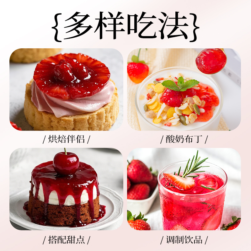 ANDROS爱果士樱桃草莓果酱150g 1瓶面包三明治抹酱酸奶烘焙原料