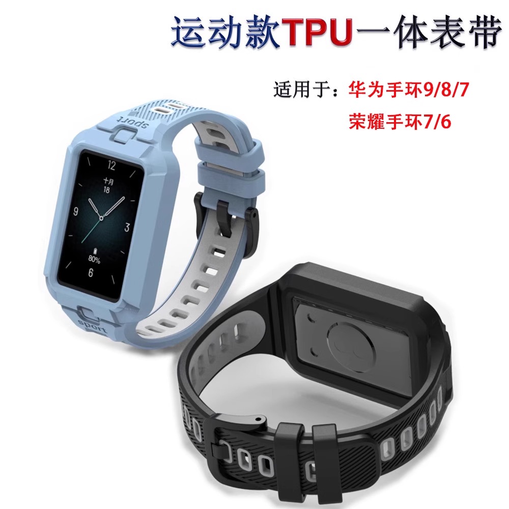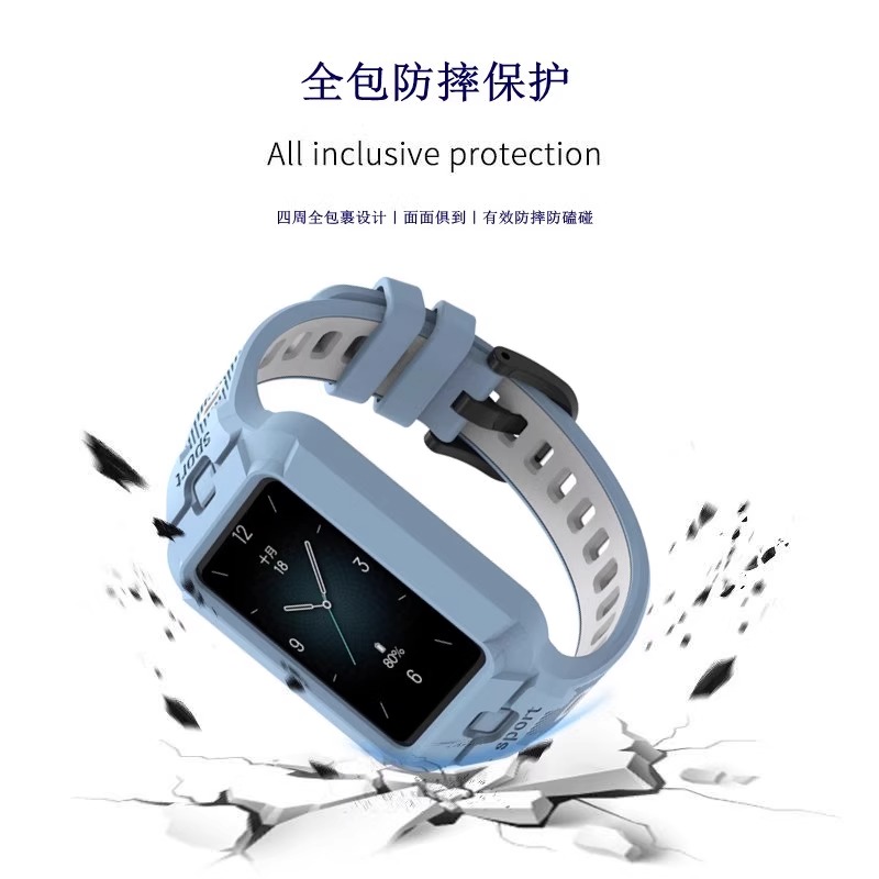 6硅胶铠甲腕带擎云HA580一体成型honor智能运动手环腕带band8替换防摔保护套 适用于荣耀华为手环10表带9