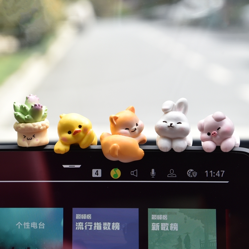 汽车中控屏幕车载趴趴摆件公仔车内饰品屏幕电脑显示器边缘装 饰品