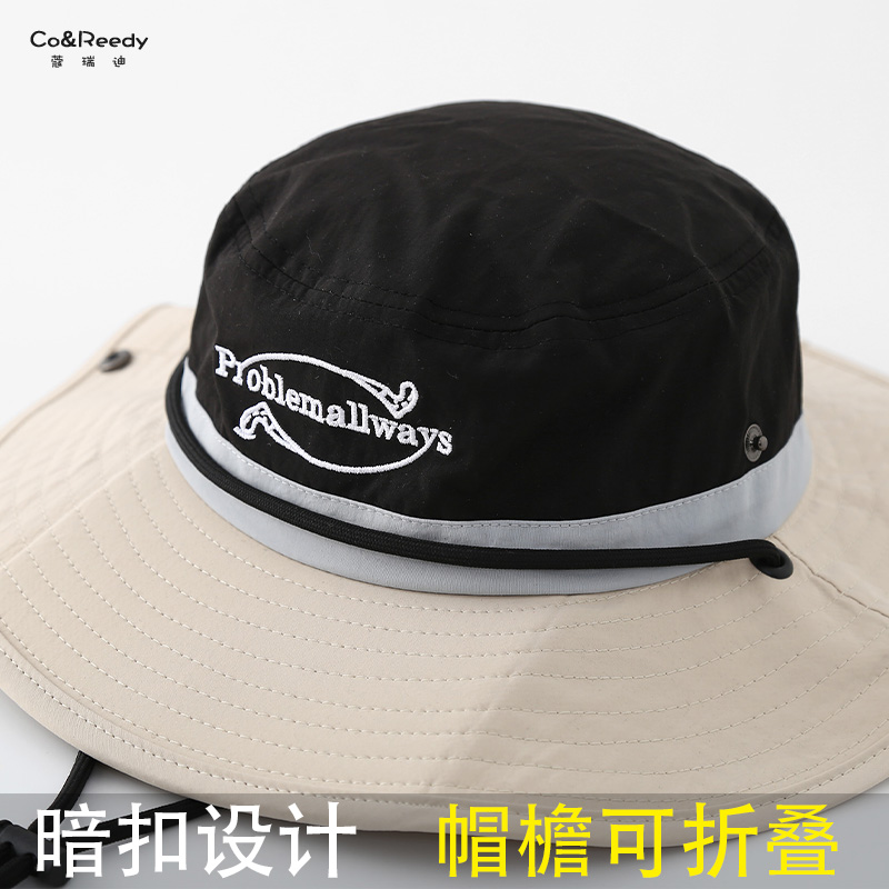 登山帽男女孩透气遮阳防晒帽宝宝字母拼色渔夫帽新款 儿童夏季 薄款
