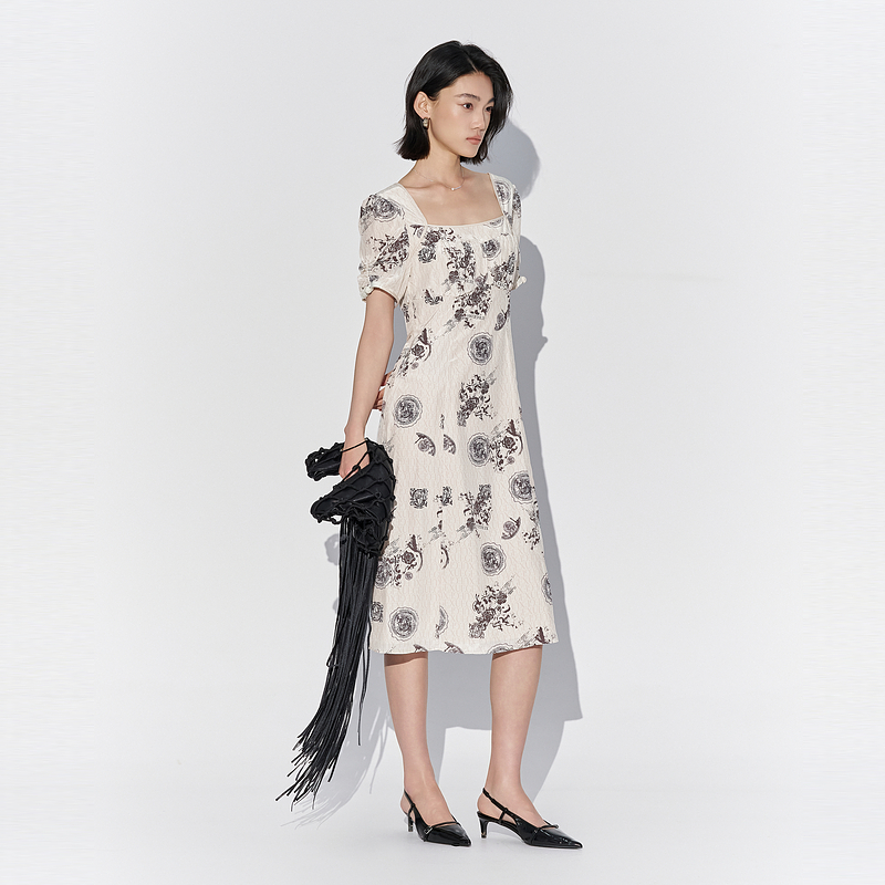 宽松波嬉风设计感碎花连衣裙1272451 法式 HM女装 连衣裙2025秋新款