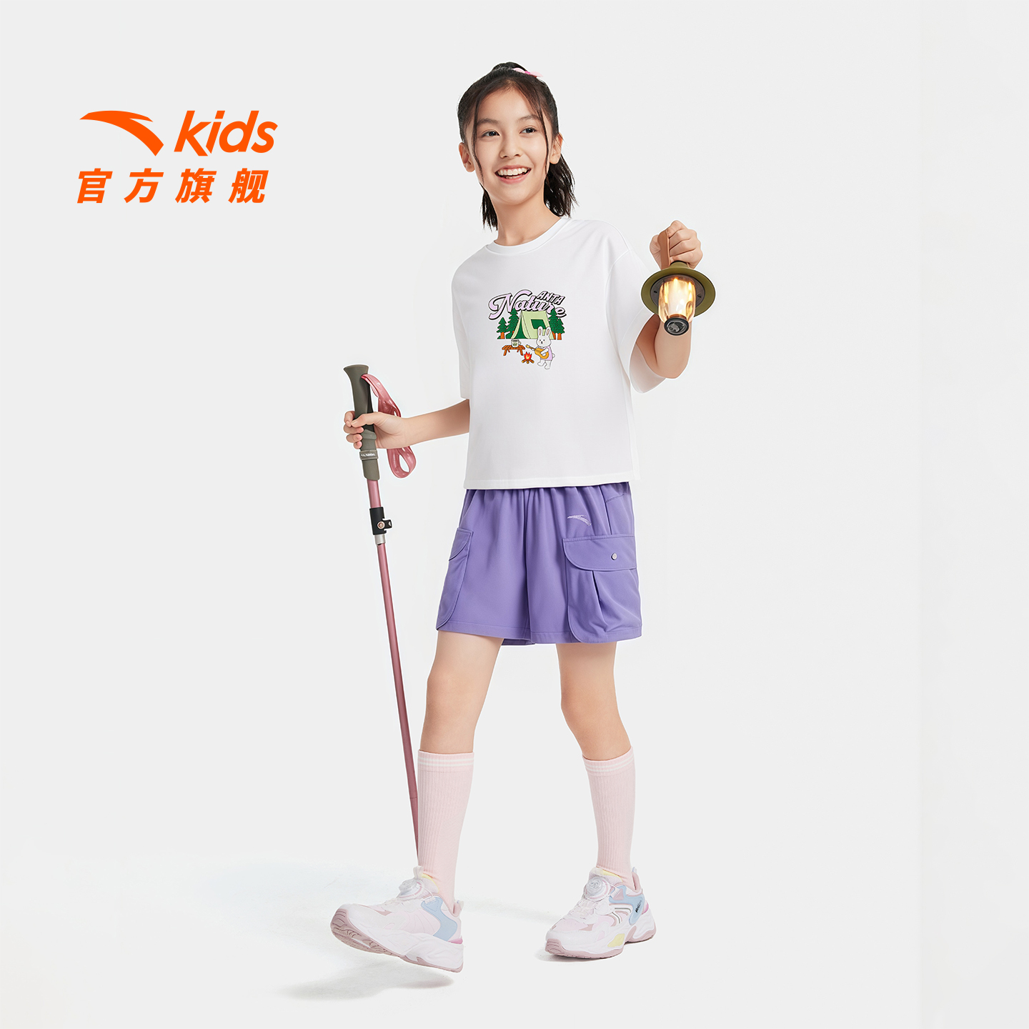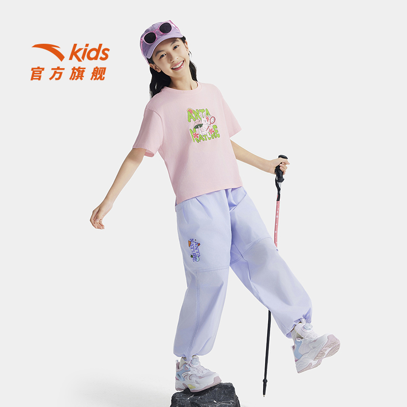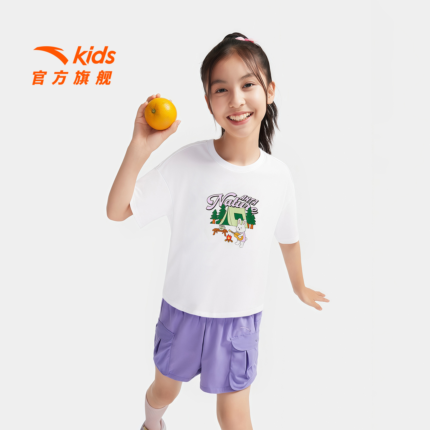 女孩纯棉透气短袖 2025夏新款 上衣 衫 安踏儿童短t女大童可爱短袖