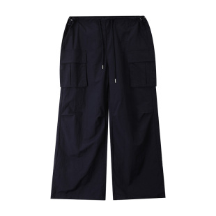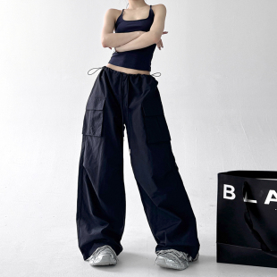 女2025新款 阔腿裤 爆款 夏季 潮 美式 抽绳高腰印花设计感拖地长裤 工装