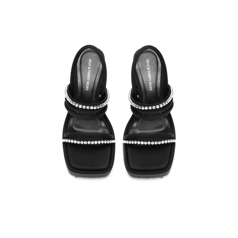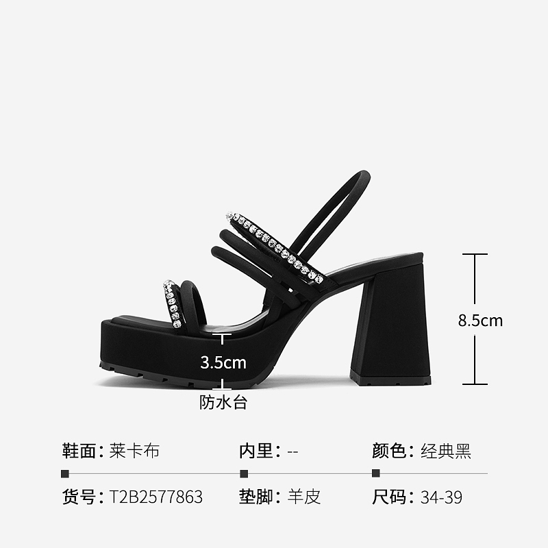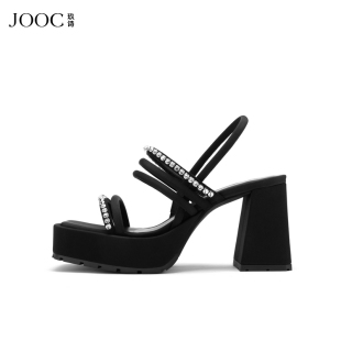 新款 女2025夏季 JOOC玖诗方头凉鞋 黑色厚底气质高跟鞋 权力美学
