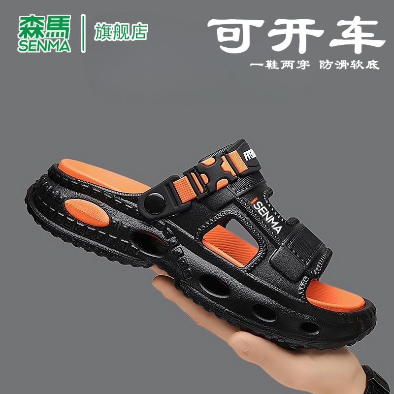 踩屎感海边涉水沙滩鞋 森马洞洞鞋 外穿防滑防臭包头拖鞋 新款 男夏季