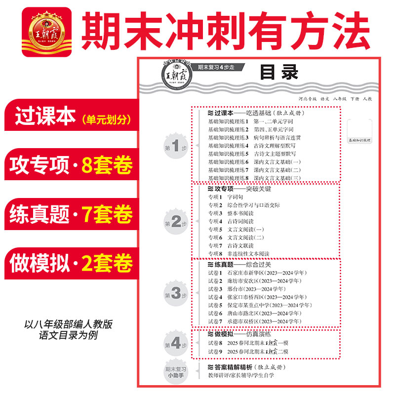 王朝霞七八年级下册语文数学英语物理河北专版 北师冀教中学初一期中期末总复习真题全套测试卷模拟考试卷子 各地期末试卷2025新版