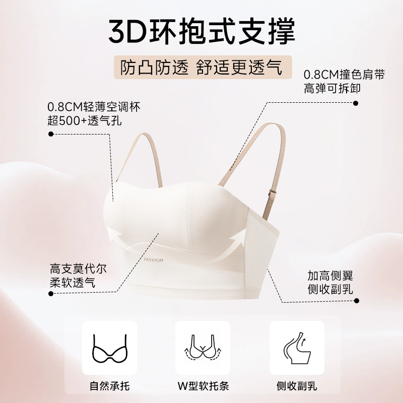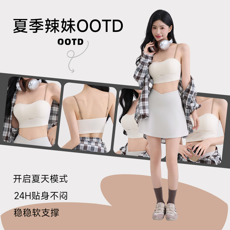 猫人美背吊带内衣女2025新款 性感抹胸内搭外穿带胸垫打底背心上衣