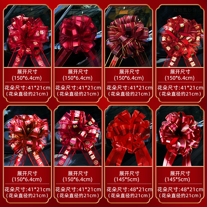 婚车装 饰手拉花结婚接亲车队红色汽车喜字丝带副车彩带婚礼蝴蝶结
