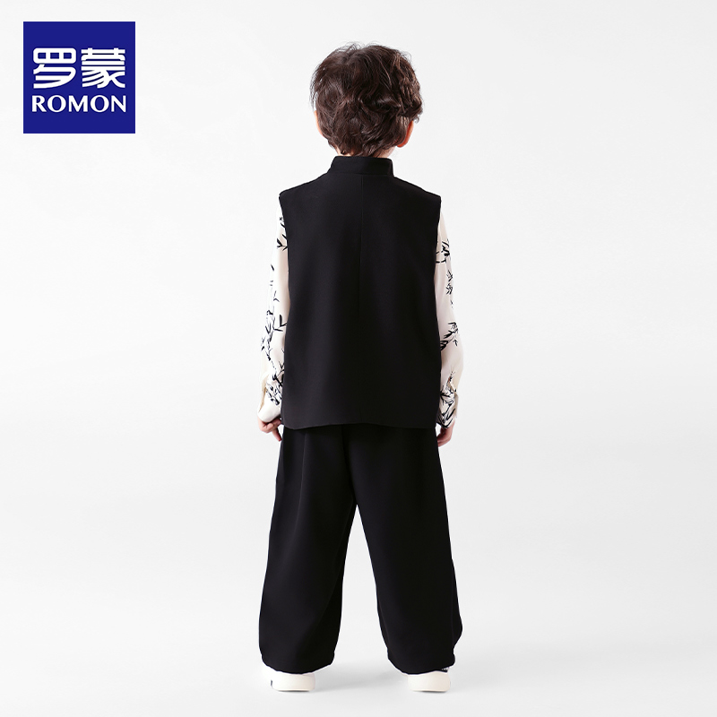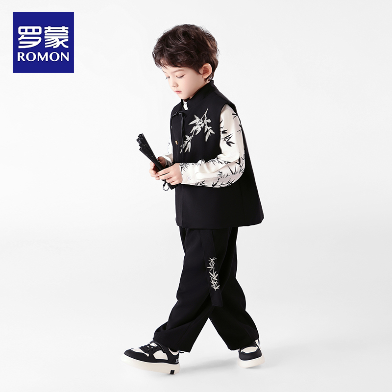 儿童新中式 罗蒙男童西装 新款 男孩马甲礼服刺绣唐装 国风演出服 套装