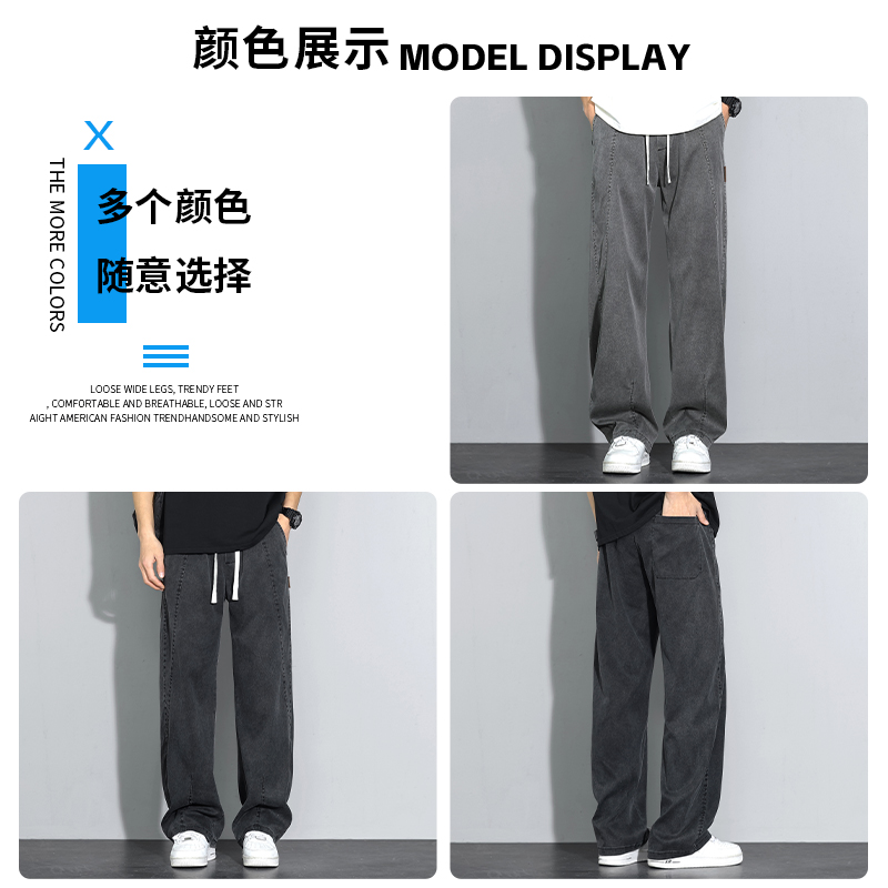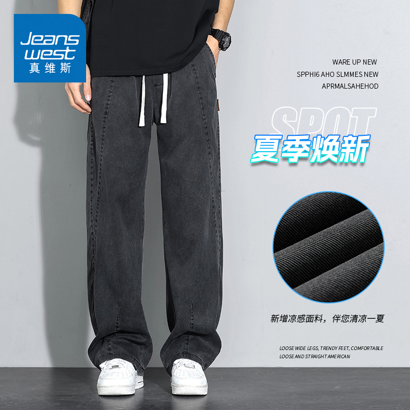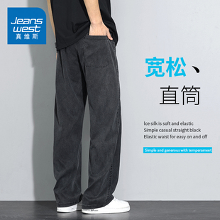 青年潮流阔腿休闲长裤 KZH真维斯天丝牛仔裤 宽松直筒裤 新款 男秋季