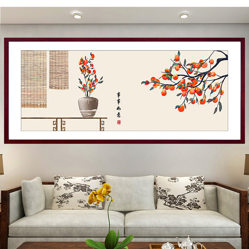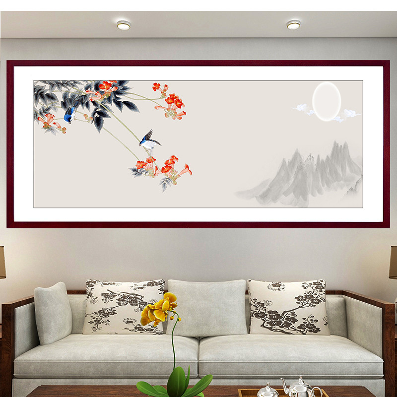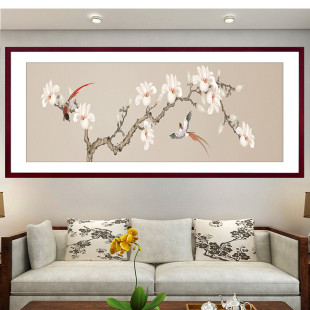 新中式 饰画挂画花鸟国画防水自粘高级感客厅背景墙贴画 床头卧室装