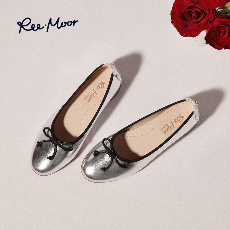 新款 女鞋 女士温柔蝴蝶结浅口单鞋 淑女平底单鞋 法式 热风2025年夏季