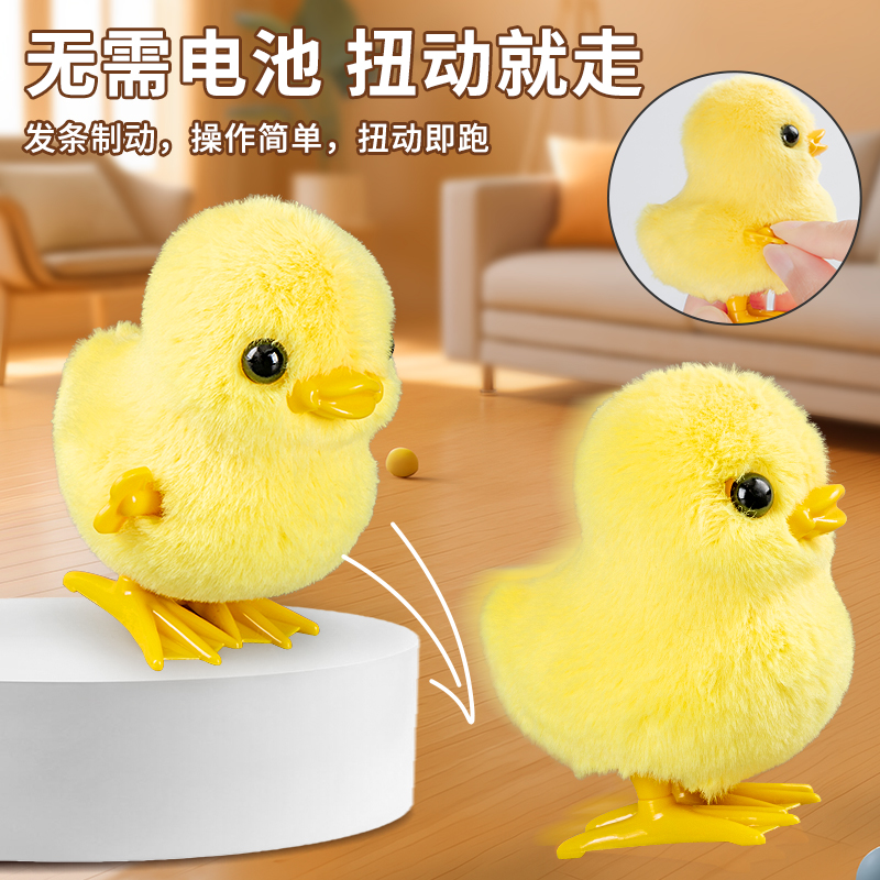 发条小鸡玩具儿童上弦发条毛绒小黄鸡宝宝婴儿跳跳小鸡仔益智早教