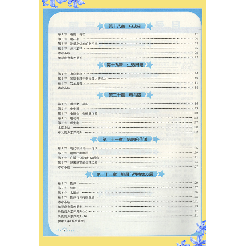 9九年级全一册物理 配人教版 初三物理书 2024 社 能力培养与测试 人民教育出版 2024年8月 2025