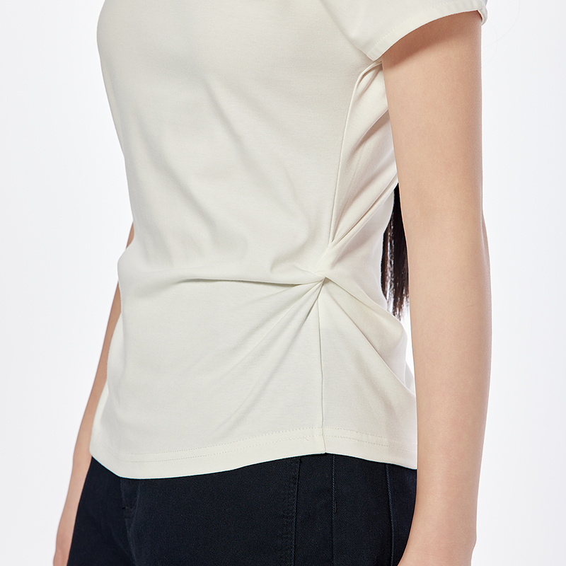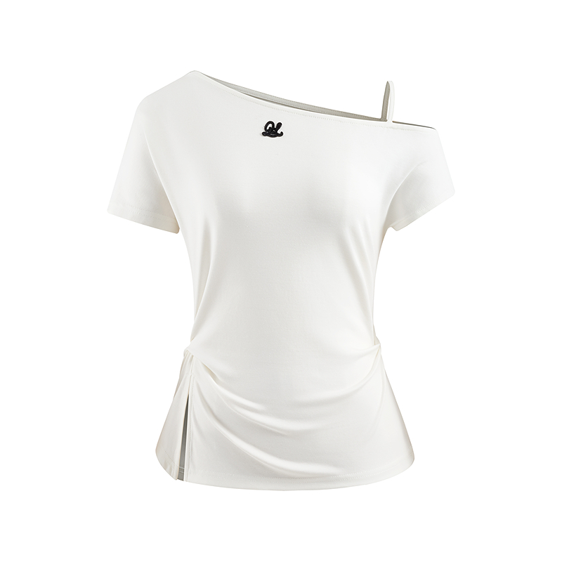 显瘦上衣 T恤简约休闲字母绣花修身 A21女装 露肩短袖