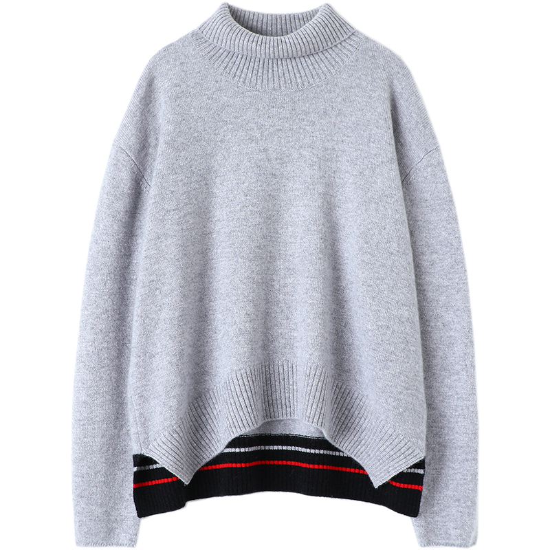 圆领100%纯山羊绒衫 灰色宽松打底上衣 女毛衣秋冬假两件拼色针织衫