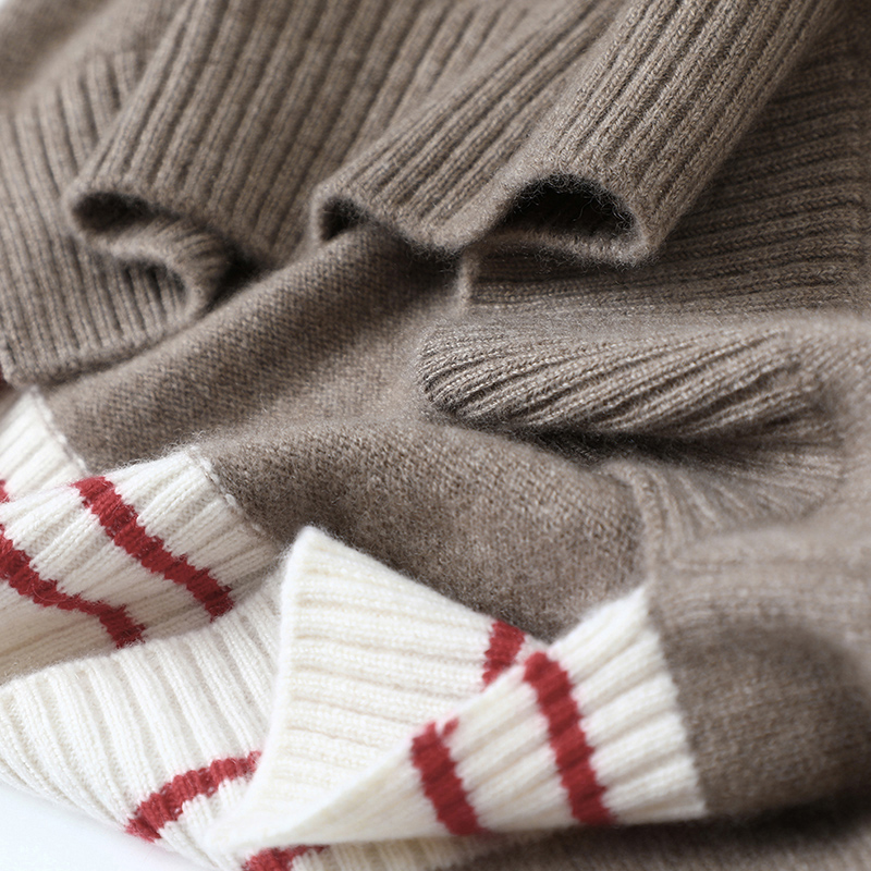 秋冬圆领羊绒衫 外套设计感小众假两件撞色毛衣 女100纯山羊绒开衫