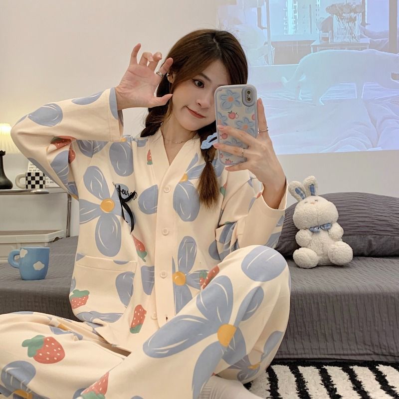 睡衣秋款 家居服长裤 女纯棉长袖 和服开衫 两件套2024年新款 春秋季