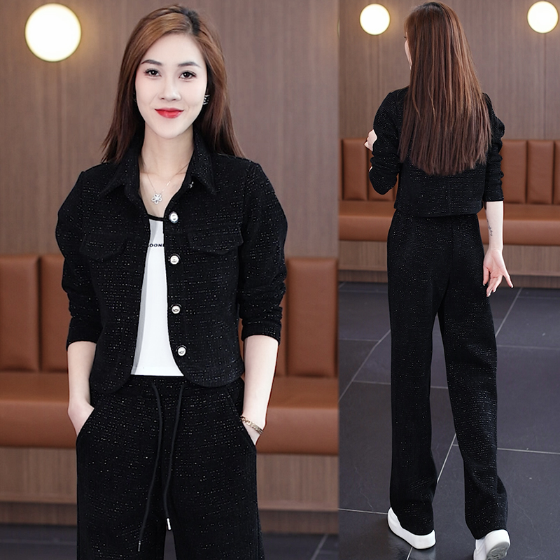 新款 女士2025冬季 小个子高端加绒加厚两件套 休闲运动套装 红色时尚