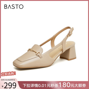 气质方头粗跟后空乐福女凉鞋 商场同款 RJF51BH4 新款 百思图夏季