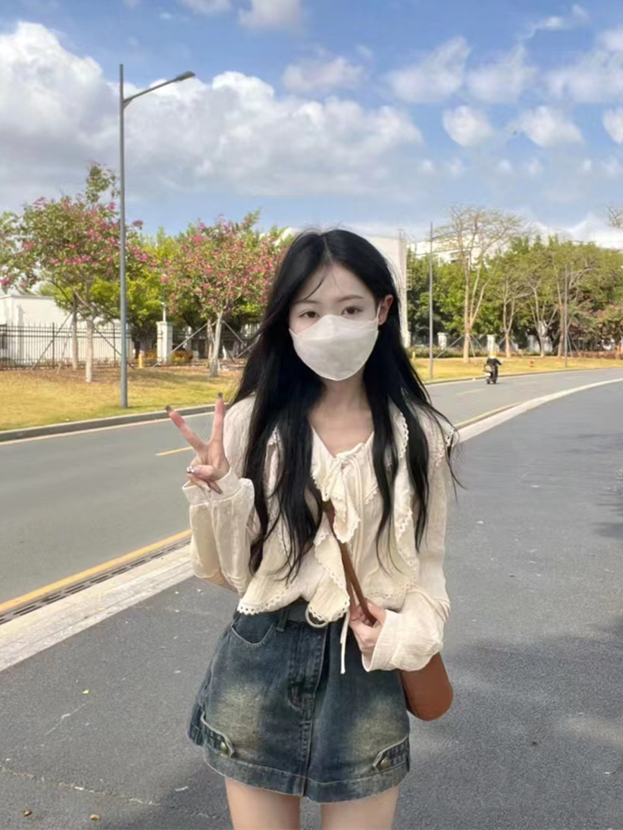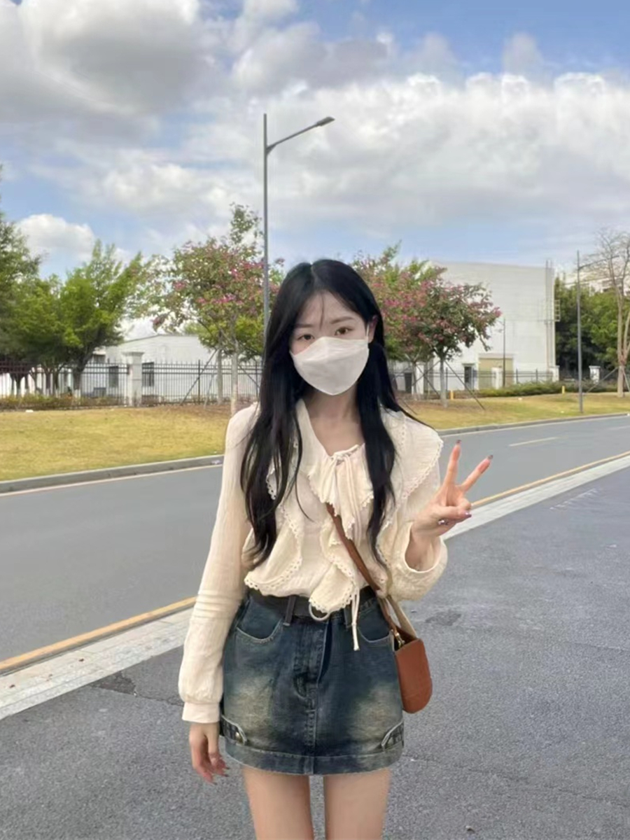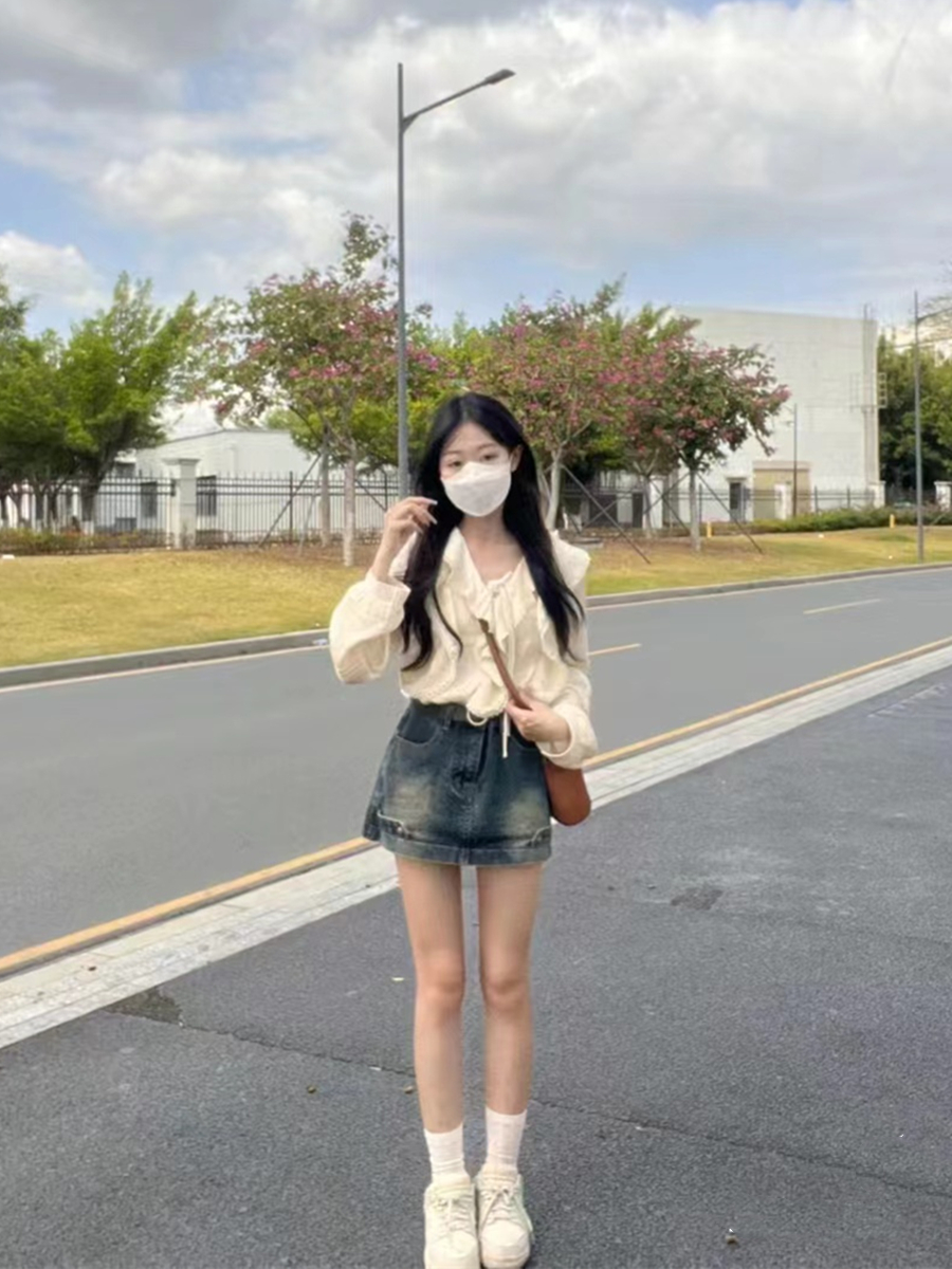 2025新款 早秋穿搭减龄漂亮洋气初恋清纯奶甜上衣牛仔裙子两件套装