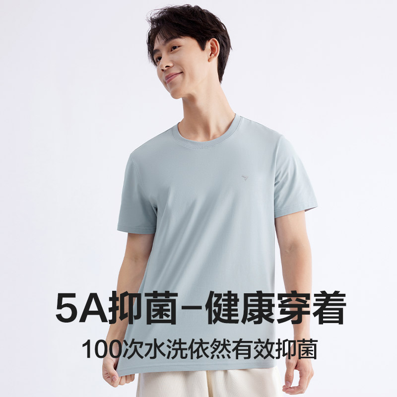 抗菌纯棉打底上衣运动休闲圆领T恤外穿 三防科技 柒牌男士 短袖