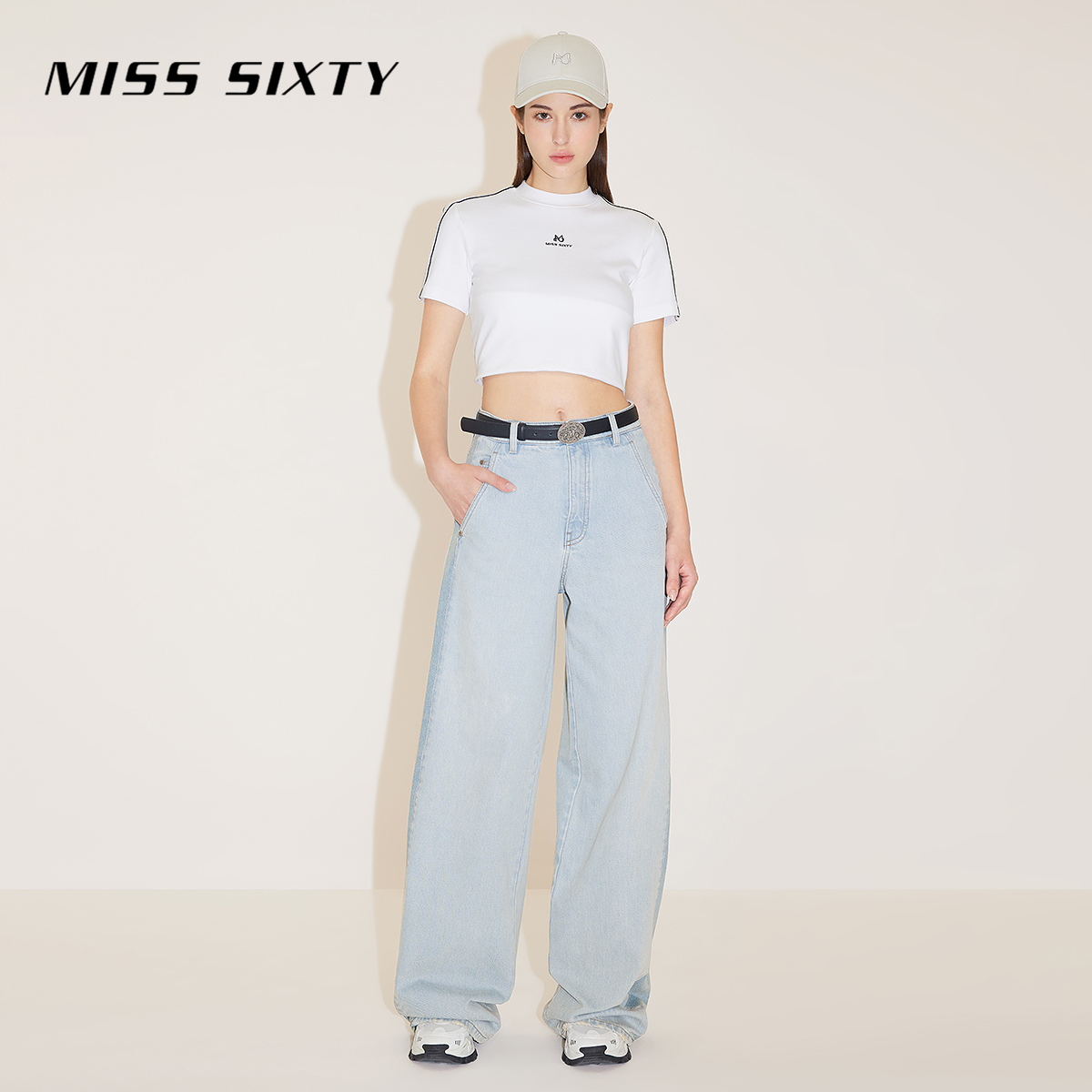 定金减免50元 牛仔裤 Miss 新款 洗水黑灰垂感阔腿裤 Sixty25秋季