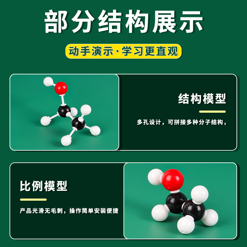 初中高中有机化学分子结构模型球棍比例棍棒球棒无机原子晶体杂化轨道电子云演示学习三角形塑料