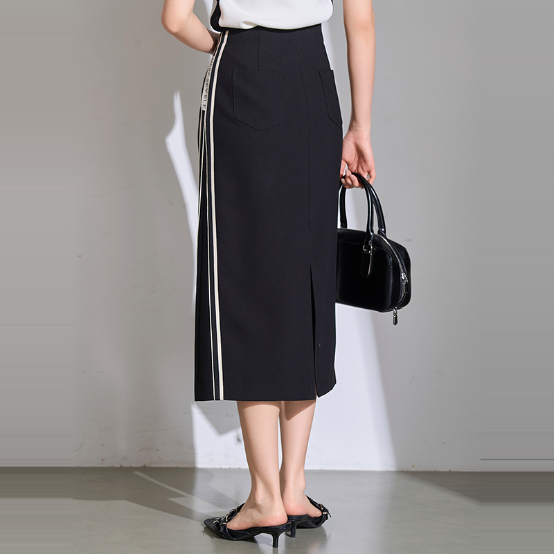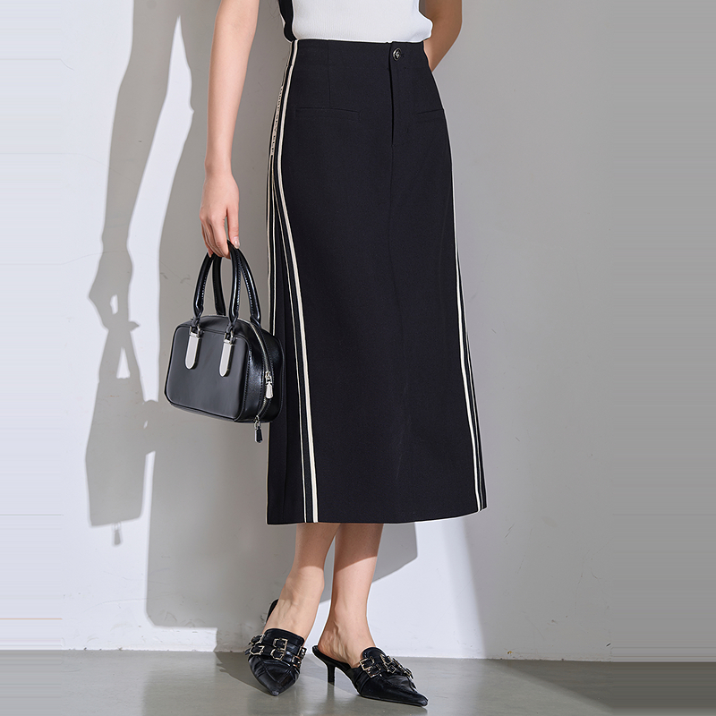 条纹撞色修身 简约时尚 曼诺比菲夏季 高腰半身裙 商场同款