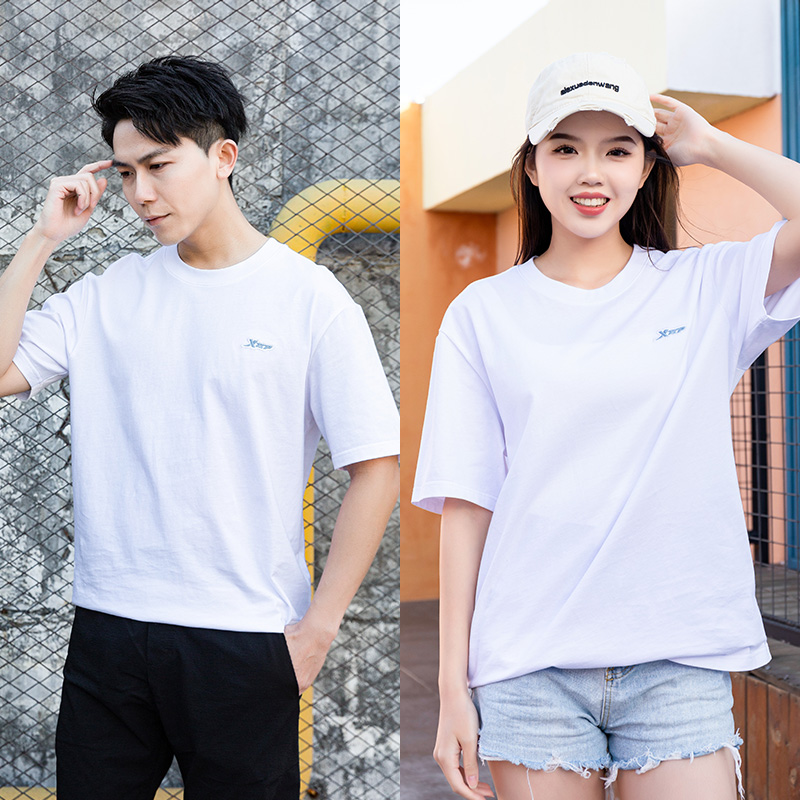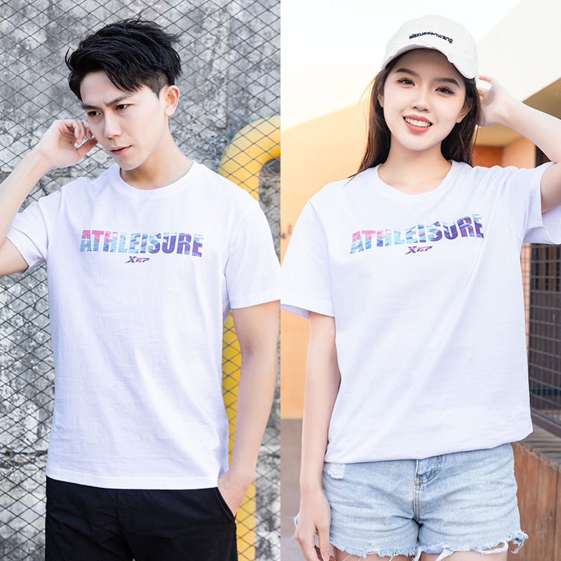 情侣款 特步短袖 纯棉纯色圆领宽松套头打底衫 夏季 上衣 t恤男女同款